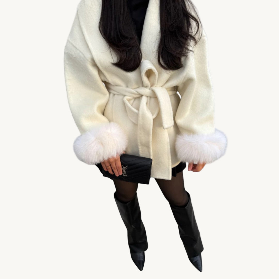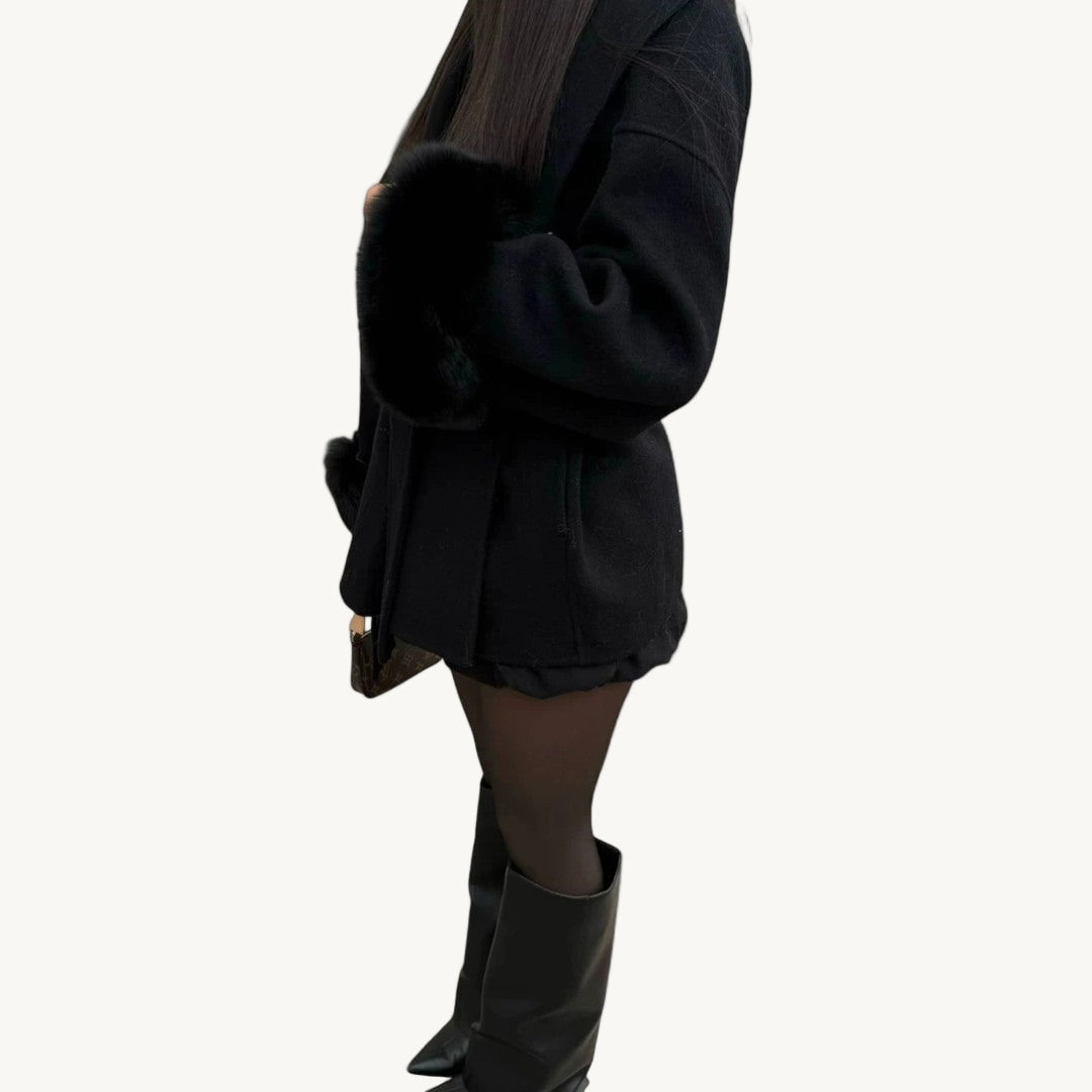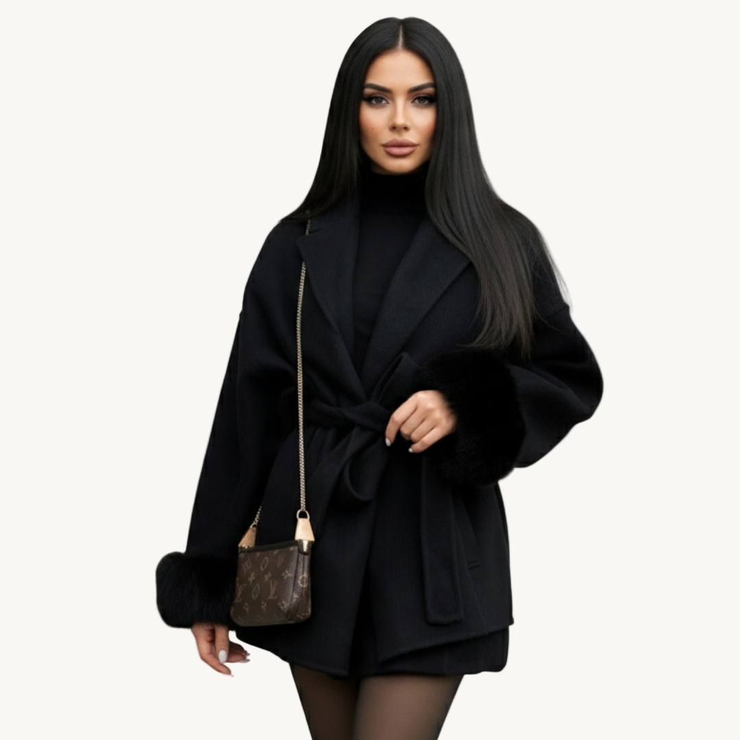 Un abrigo elegante y atemporal que añade un toque de lujo a tu armario. Confeccionado en lana de alta calidad con una textura suave y lisa, combina comodidad y sofisticación en una sola prenda. Los puños desmontables de piel sintética añaden un toque de refinamiento, lo que te permite adaptar el look desde un estilo chic sobrio hasta una elegancia extraordinaria.