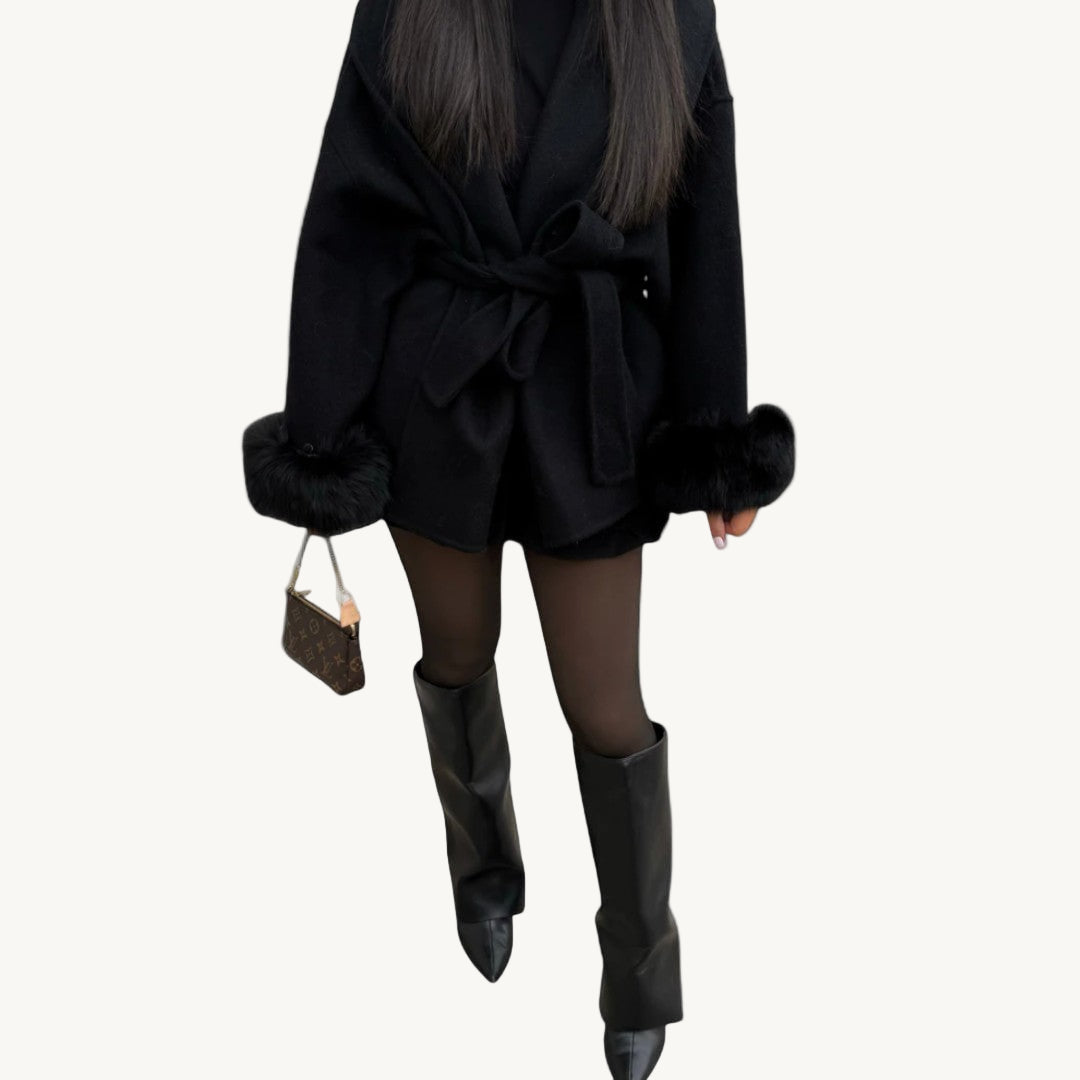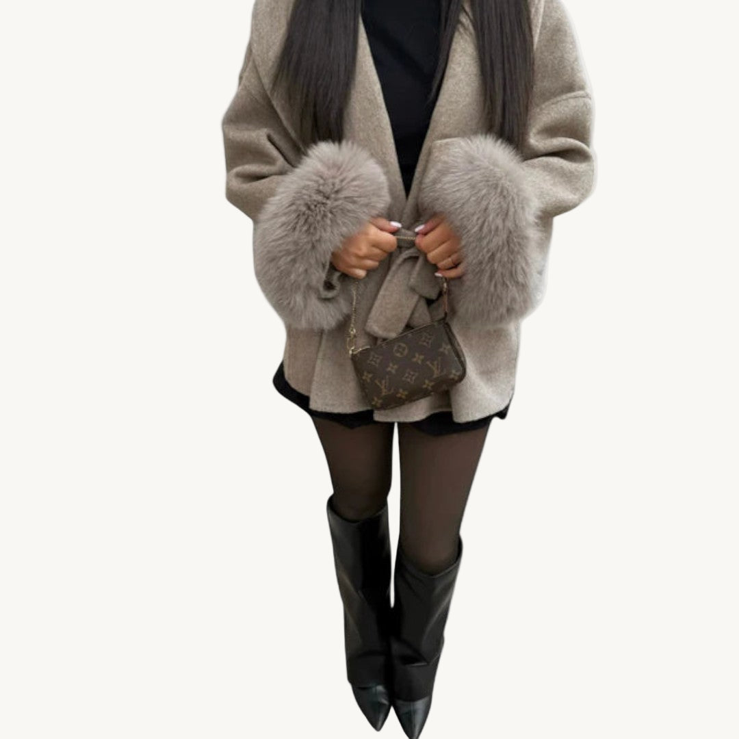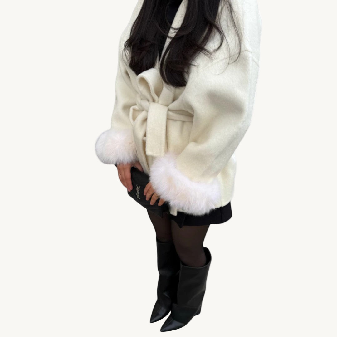 Un abrigo elegante y atemporal que añade un toque de lujo a tu armario. Confeccionado en lana de alta calidad con una textura suave y lisa, combina comodidad y sofisticación en una sola prenda. Los puños desmontables de piel sintética añaden un toque de refinamiento, lo que te permite adaptar el look desde un estilo chic sobrio hasta una elegancia extraordinaria.
