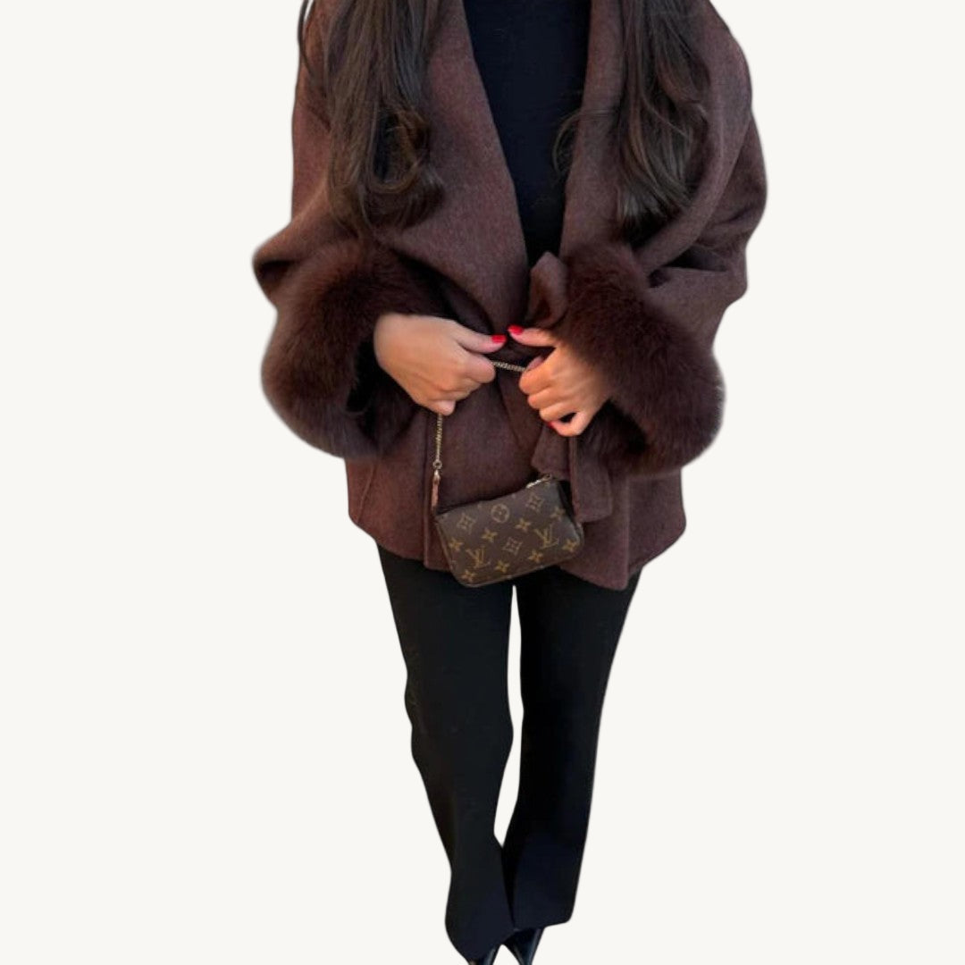 Clara Domínguez – Elegante abrigo con detalles de piel sintética